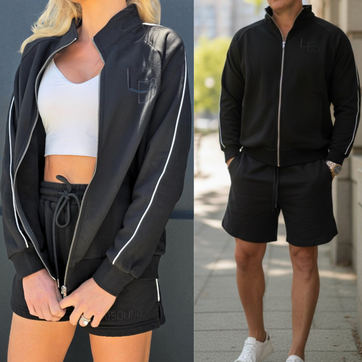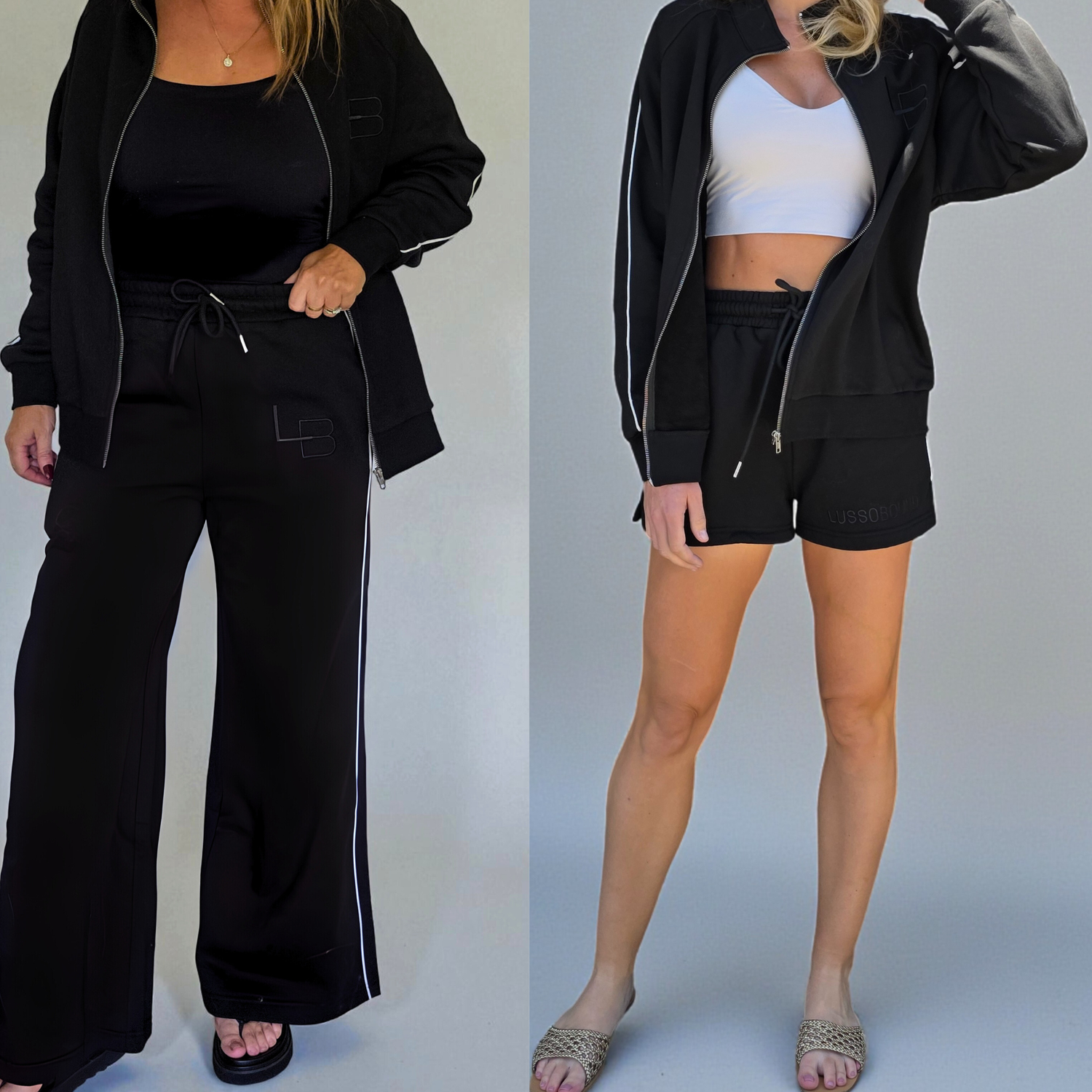 The Track Pants and Shorts in classic black are crafted for comfort and style. Perfect for travel days, lounging, or on-the-go wear.