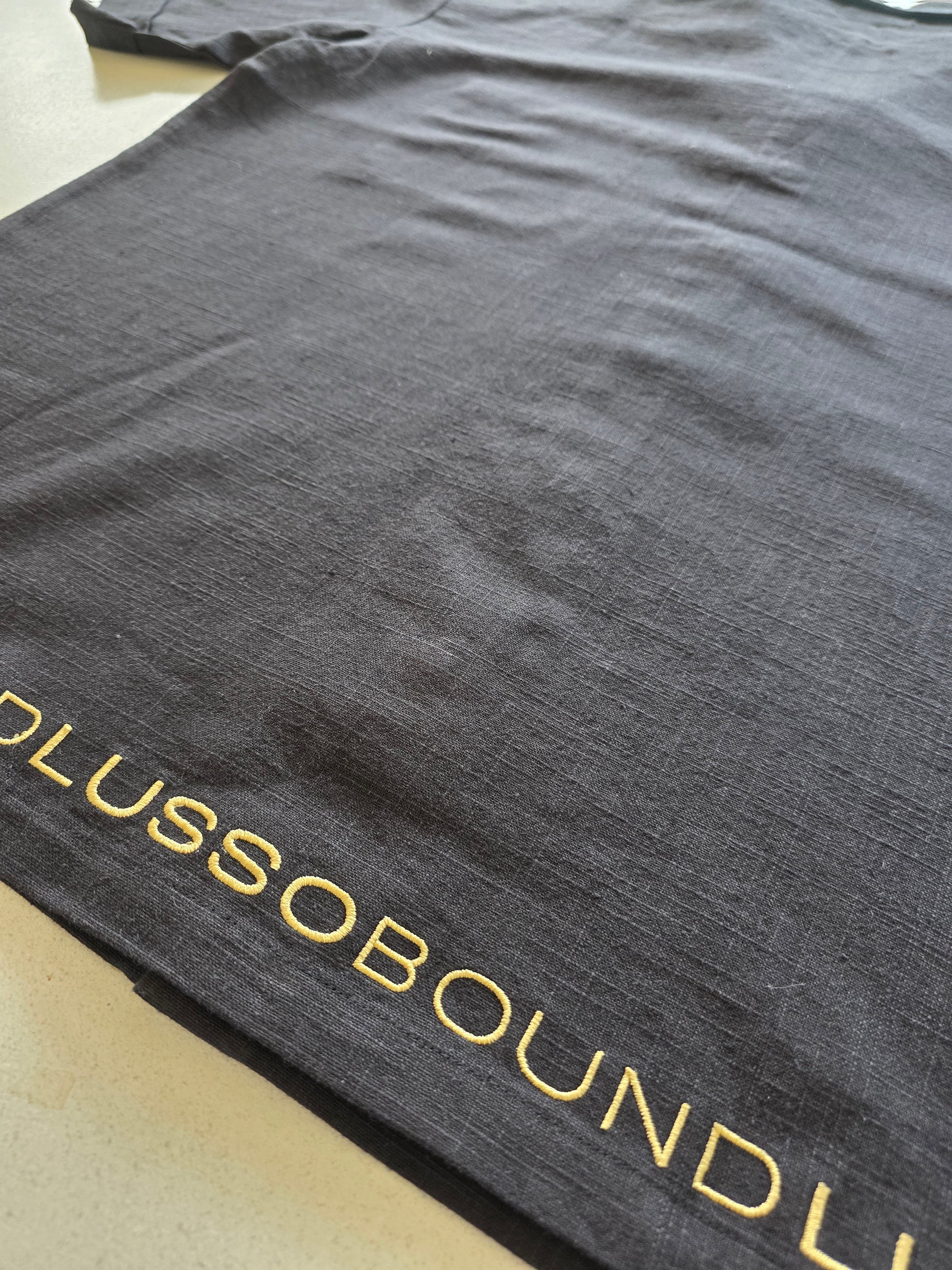 - Tonal embroidered Lussobound branding across the back hem